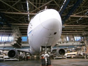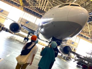 飛行機の整備、車でいう車検の様子を間近で見学することが出来ます。