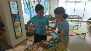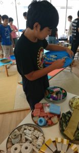 廃材素材をハサミで切って何かを作り始めたり・・・