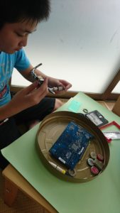 今回は外部の先生に来てもらってのワークショップ、「フィルム缶にアート」活動を紹介します。