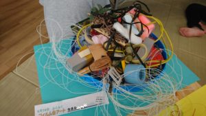 どうしても普段の制作活動では、使える素材のバリエーションも制作ごとで決まってきてしまいます。しかし、今回のように、部屋中の材料から好きなものを選べ、いくら使ってもなくならないというのは、本当に素敵なものづくり環境でしょう。