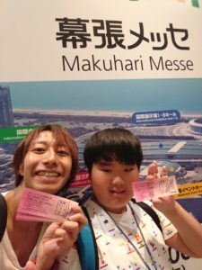 会場のある幕張メッセまでやってきました!女子組トイレ待ちの間、男組で自撮り!複数ガイドなのに(笑)