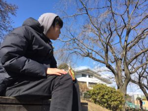 公園を出ると「ベンチで食べようね」とそれはそれは早口で言い、