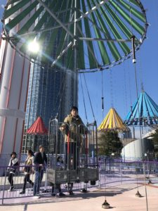 次のアトラクションはスカイフラワーと言って、傘が開いて空を飛ぶようなイメージのアトラクションです。
