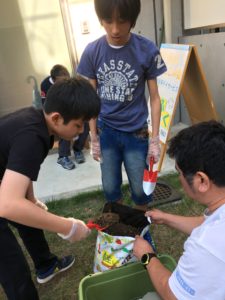 専用の土を入れた後はいよいよ苗を植えていきます!!