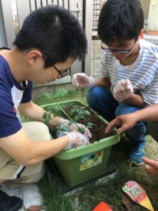 「どこ植えるのがいいかな?」と話しながら植える位置を決めています。