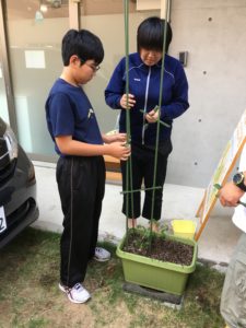 最後に苗がしっかり育つように周りに支柱を立てていきます。