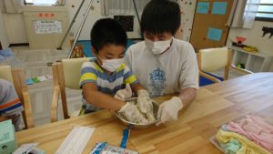 潰すのは狙いを定めて力を入れることが必要ですが、みんなとても上手でした!この後ホットプレートで焼き色を付けたら甘くおいしいスイートポテトができあがりました。