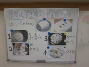 続いてはお月見団子づくり。にこにこのお月見団子は白玉とお豆腐でつくる、ヘルシーもちもちなお団子です。