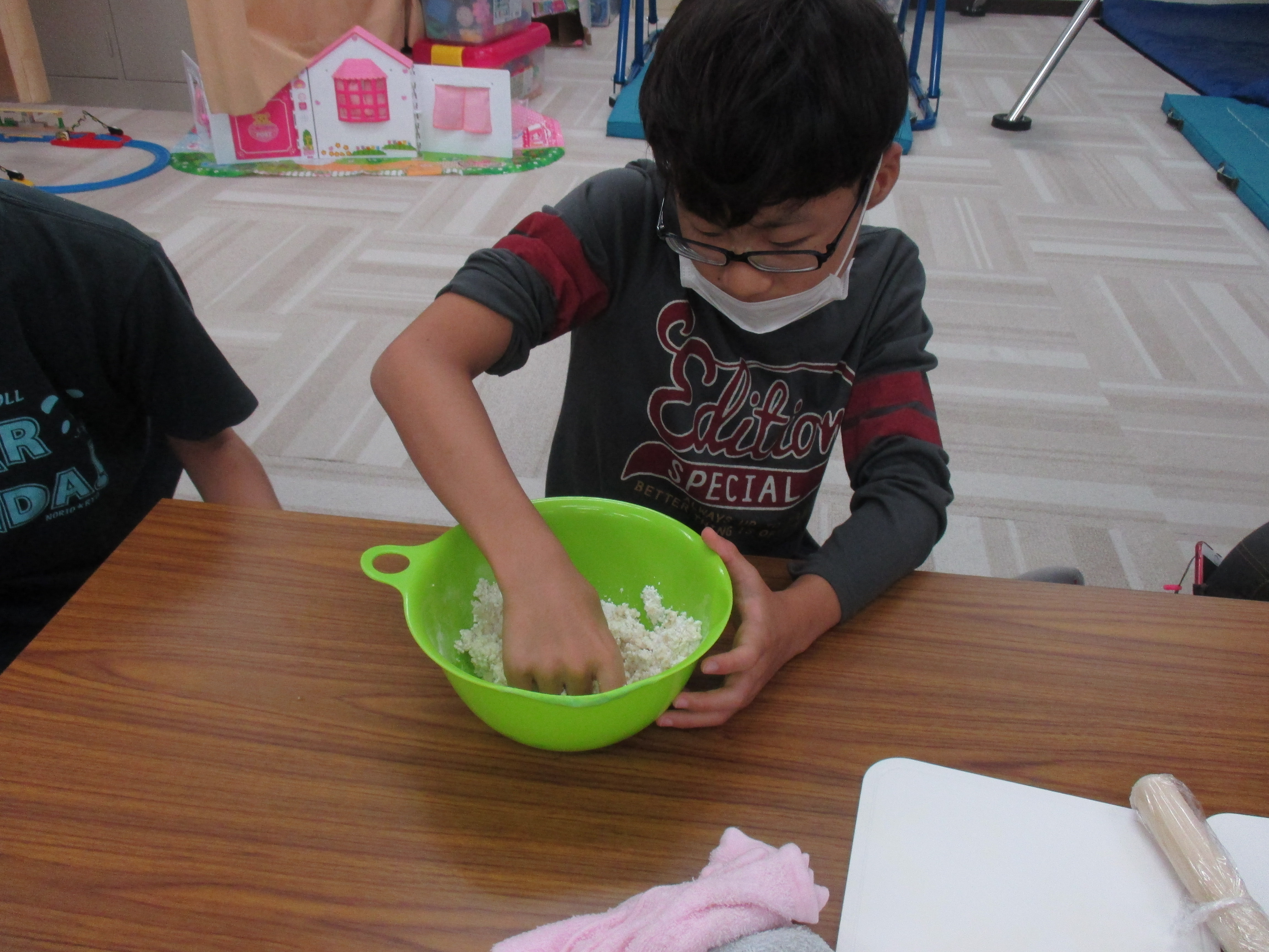 少し手を湿らせて素手でこねたり、それぞれ色々な方法で参加していました。