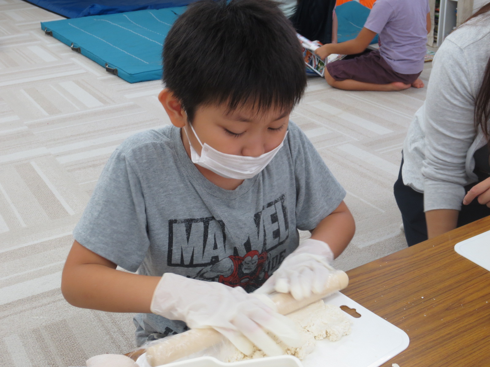 お買いもののお手伝いをしてくれた子や、ガスコンロを用意してくれた子もいらっしゃり、それぞれ得意な事を一生懸命行い、お月見団子作りができました。