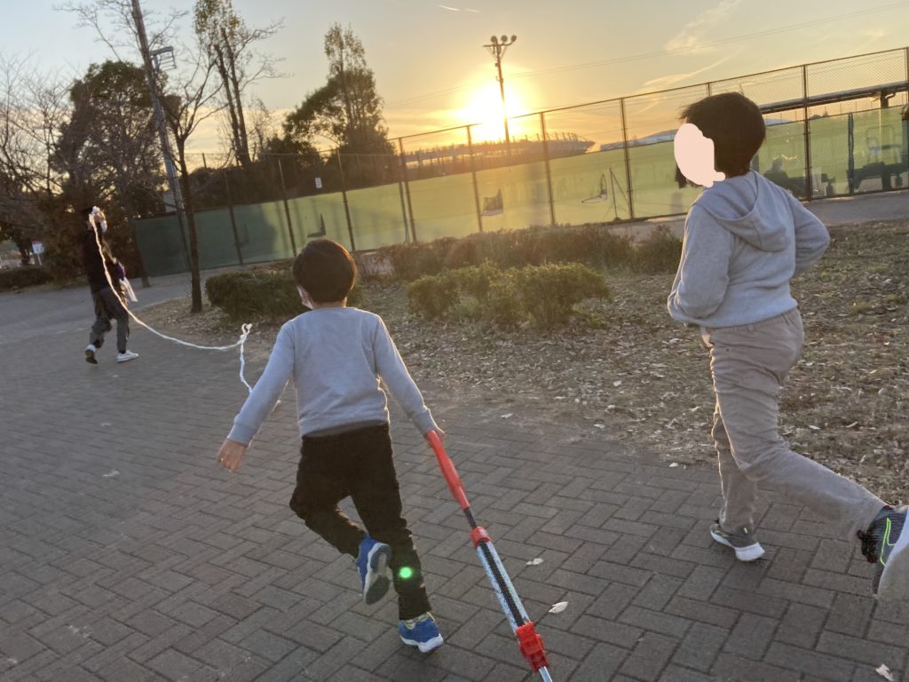 1月の季節遊びとして、自分たちで凧をつくり、飛ばしに出かけました。