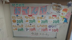 今回はおでん屋さんでしたが、同じような形で以前から行っているおやつのお買い物遊びは、好きなお菓子を選べて、いつもと違うメニューが楽しめる、子どもたちにも人気のプログラムです。