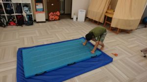 さぁ、今日は昨日に引き続き秋活動紹介パート2として、にこにこ室内運動会の様子をご紹介いたします!大きなテーブルをはじに寄せれば運動サーキットの完成です。それでは室内でも身体を動かし頑張るみんなの姿をご覧ください♪