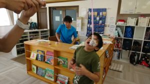 そしてお待ちかね最終ステージがパンくいゾーンです。なかなか難易度は高いのですが、みんな頑張って「手を使わない」を守れており偉い!ゲットしたパンは今日のおやつになるのでみんな必死です(笑)