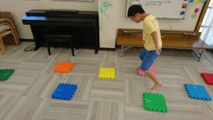 第1ステージは音符ブロック渡り。ケンケンパの要領で、床に落ちないようにブロックのうえを華麗に通過!