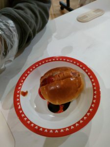 ソーセージを指と見立てて、切込みを入れて、火を通して、パンに指をはさんで、血(ケチャップ)をかけると…
