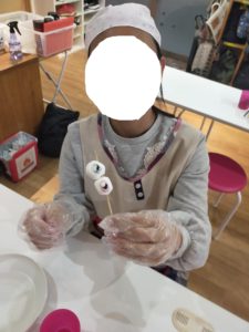 ふくふくでは、ハロウイン調理として、先日、指ホットドックと目玉ポップマシュマロの調理をしました。