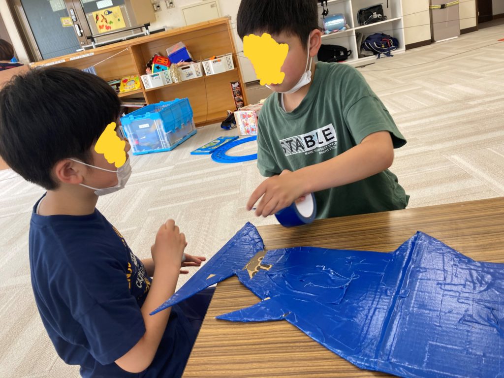 (大きなサメを作っています。にこにこ水族館の完成は間近!?)