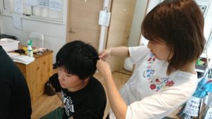 ショートの子でも、ゆみちゃんの編み込みテクニックが光ります!頼れるお姉さん(#^^#)