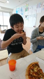 普段のお昼はコンビニやお弁当が多いのですが、子どもたちからのリクエストもあり、ピザをテイクアウトで注文して、ピザパーティーを開催したり、