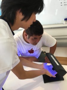 ふくふくではこれから感染症等も流行る時期だし、しっかり手洗いの方法について学ぼうという話になり、保健所から機械をお借りしてみんなで勉強をしました。