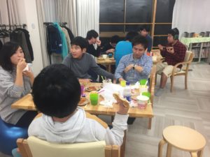 カレーとナンが出来た頃、買い出しチームも戻ってきて、いよいよハロウィンパーティーの開始です!