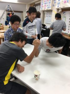 保護者会での一場面(腕相撲大会)