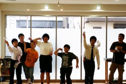 小雨が降っていたので、室内で紙飛行機を作りました。 ★作り方を見ながらみんなで確認しながら 丁寧に折りました。 ★遠くに…