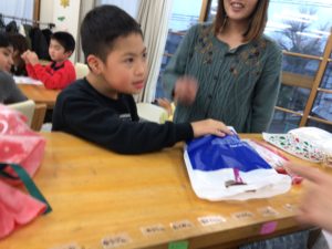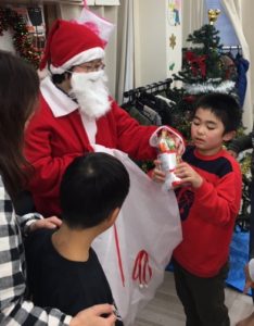 プレゼントをもらって大喜び!!「ありがとう」と丁寧にお礼を言う子もいました。