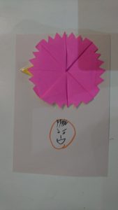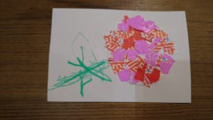 カーネーションを貼り絵や朱肉を使って表現した子もいます。