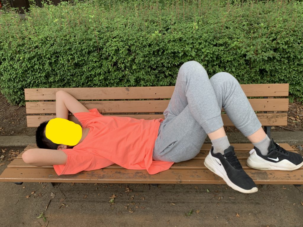 まったりベンチで一休み(一眠り?)する子。