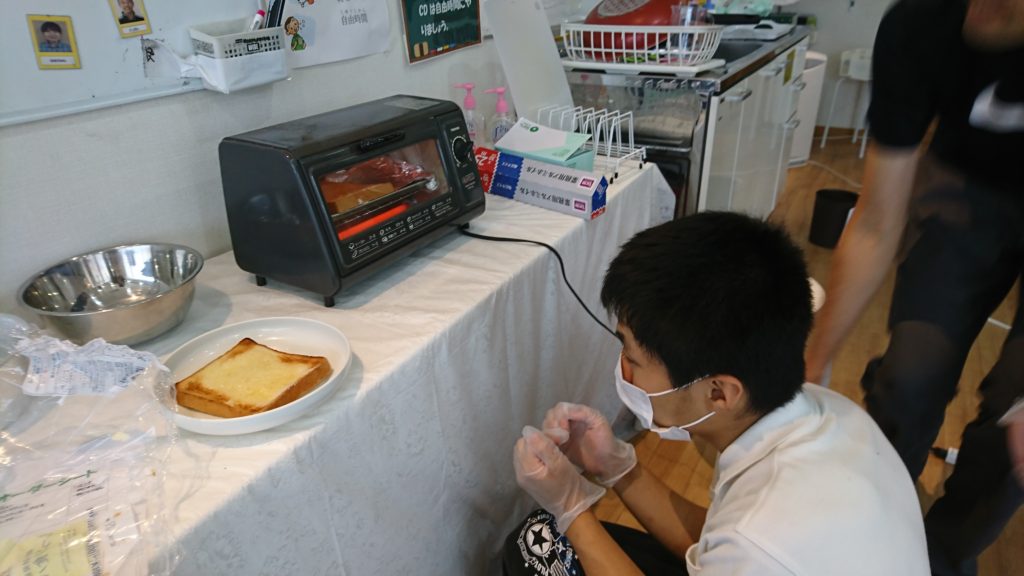 せっかくなので、この日のおやつは「ふくカフェ」を開店。タピオカだけでなく、バタートーストを焼きます。