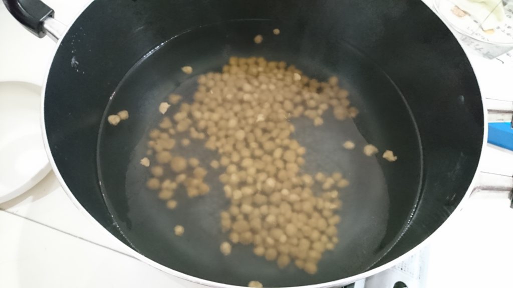 茶色い塊が、今お鍋の中でタピオカに進化を遂げようとしています。