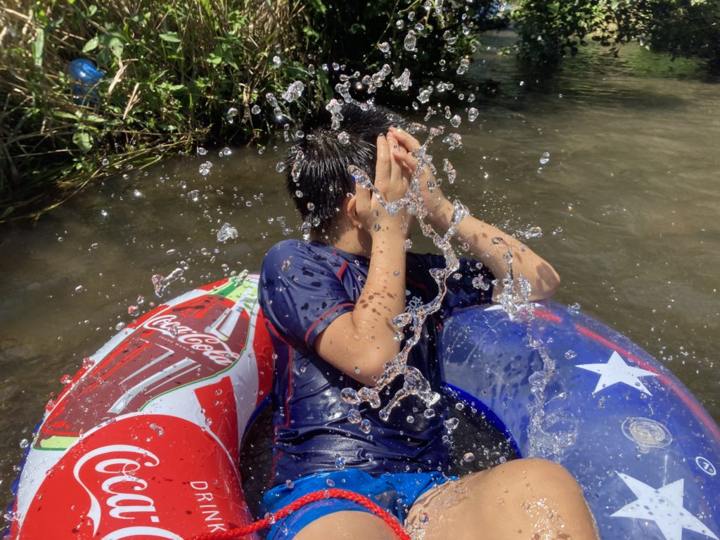 浮き輪に乗って《ラフティング》ごっこもしました。