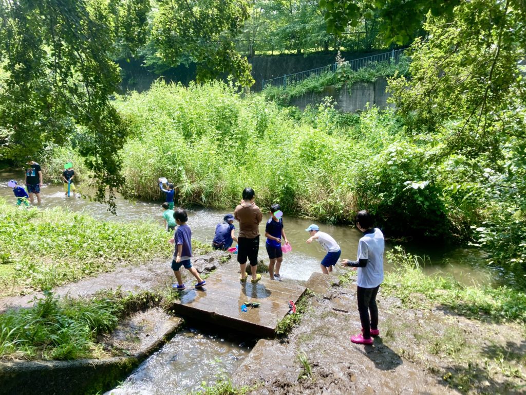 開放的な野川でも、子どもたちの声が”響く”ほど、大笑いでした。