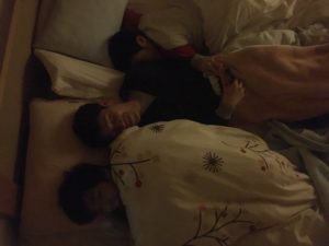 荷物をいっしょに確認したり、歯を磨こうと誘ったり。