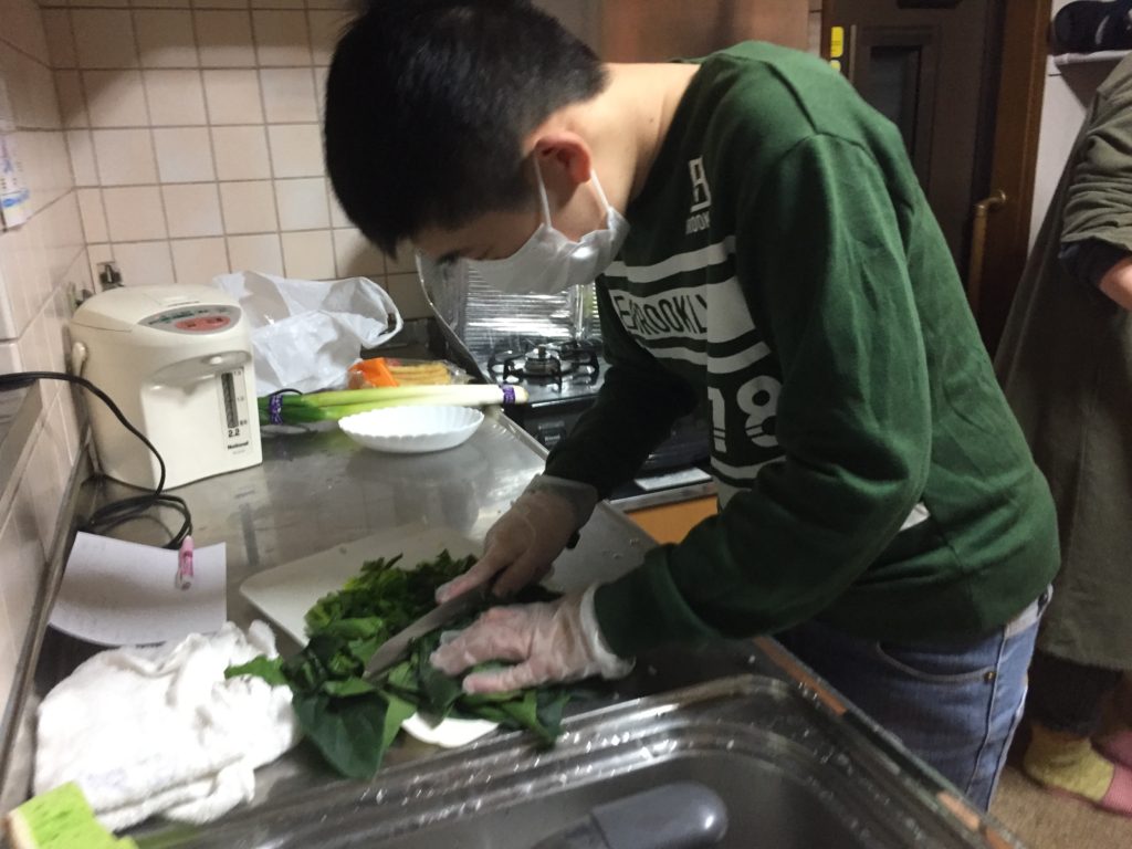 日によっては、子どもたちがいっしょに台所に立ったり、