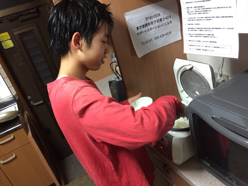 にこんちのごはんは、いっしょにお泊りをするスタッフによるてづくりです。