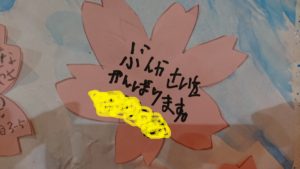 そして、この桜、実は花びらにはみんなの頑張りたいことや目標が刻まれているのです!