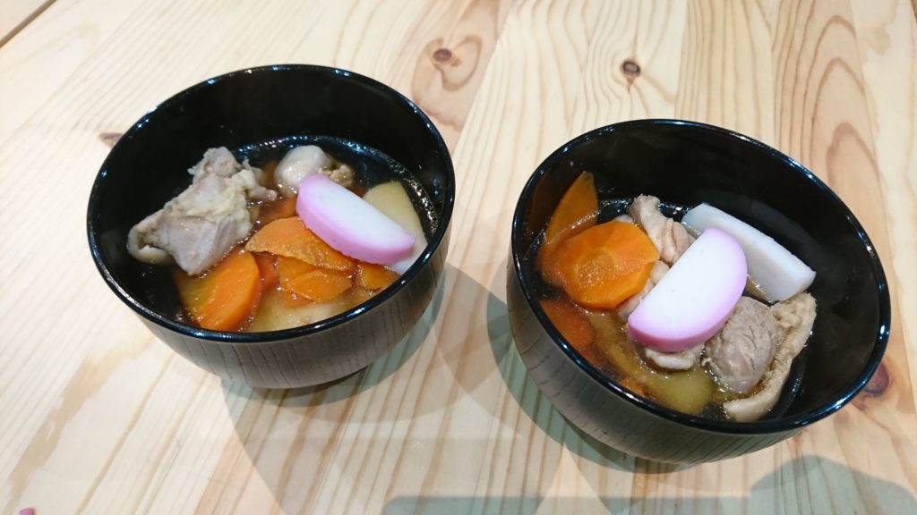 完成後したお雑煮はとても熱々だったのでみんなでふーふー言いながら食べました(笑