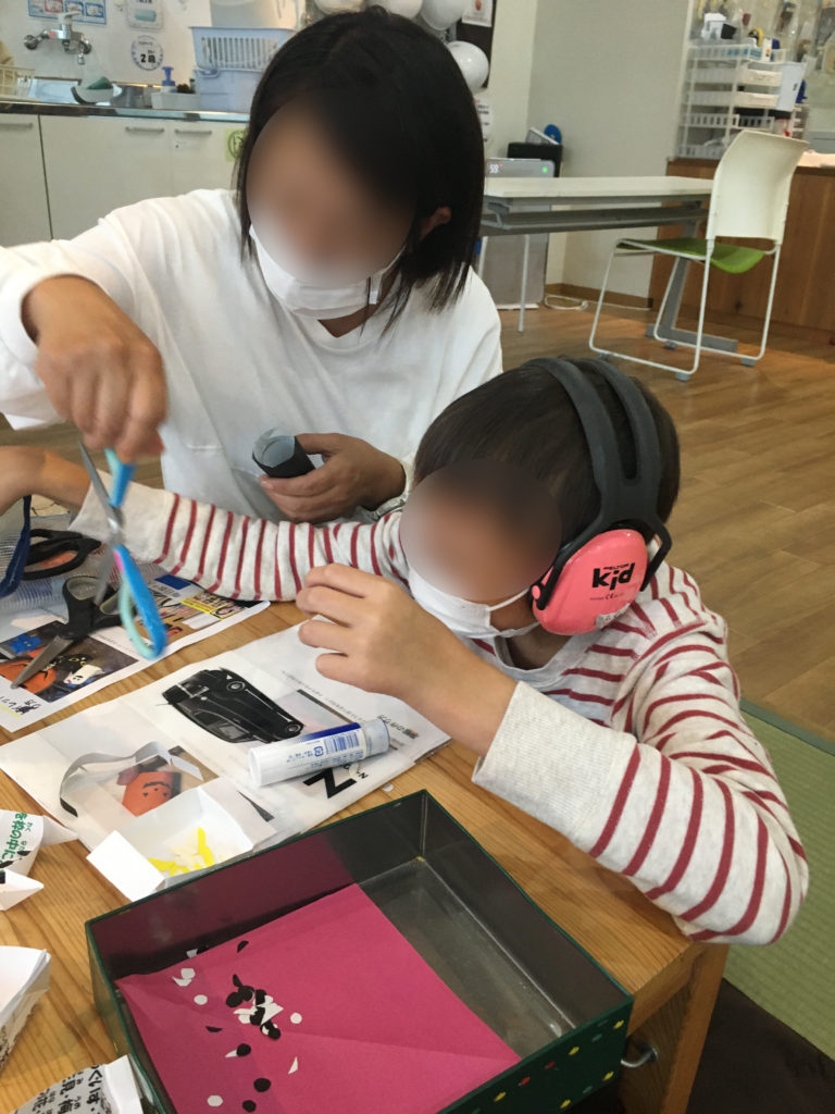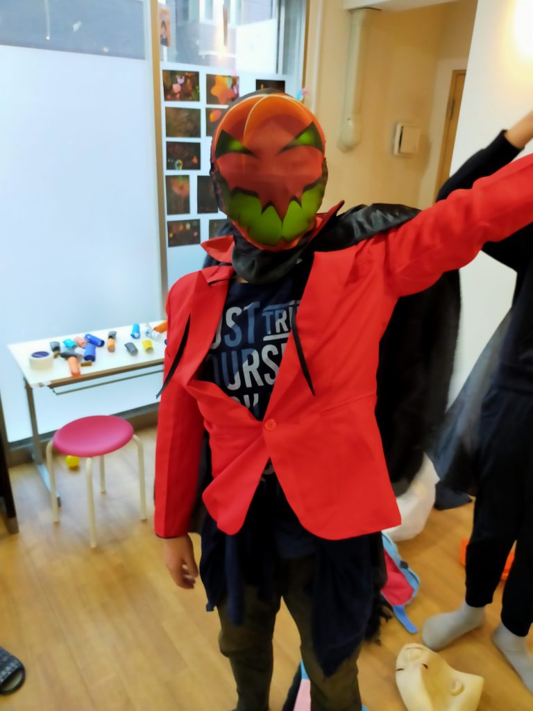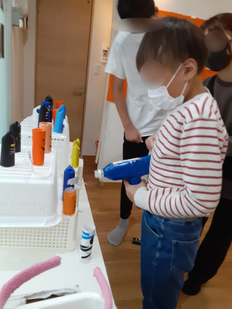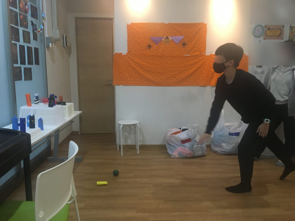 ハロウィン的当てなどの遊びをしてから室内に飾り付けました。