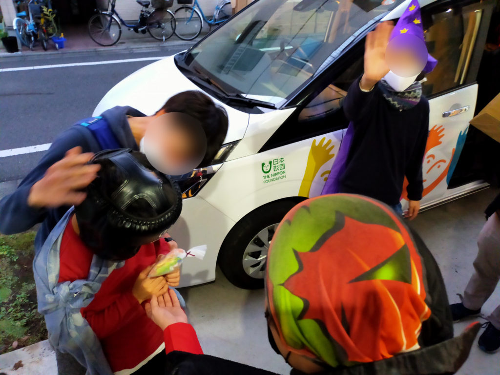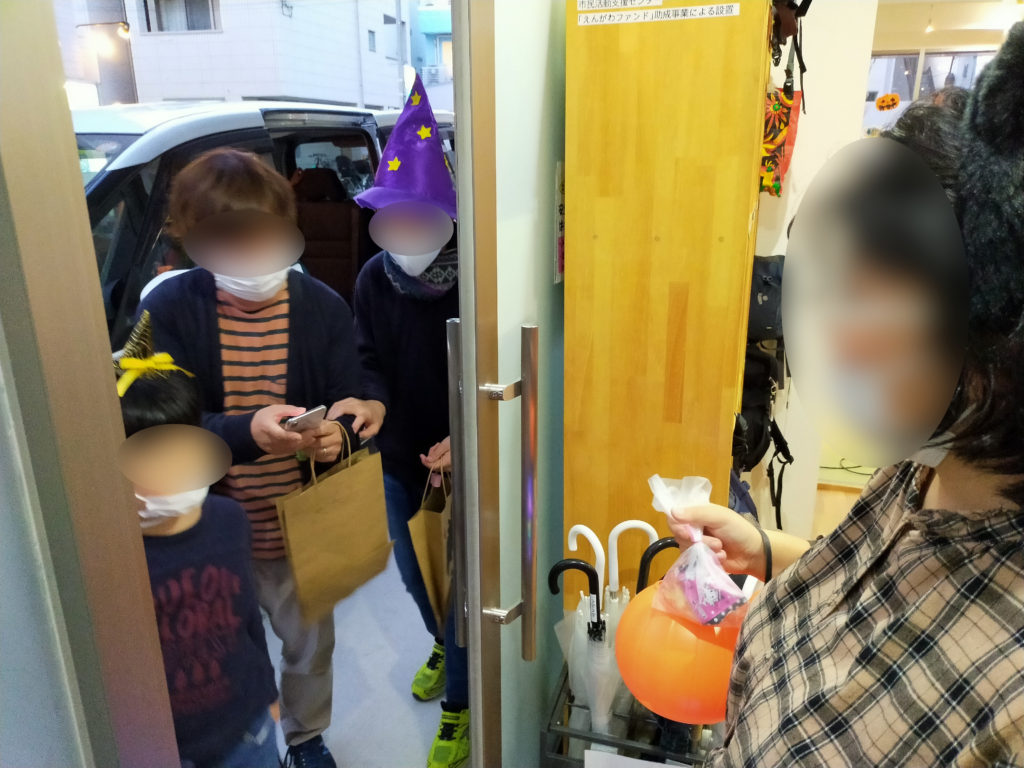 にこにこキッズルームの子どもたちがお菓子をもらいにやって来ました。