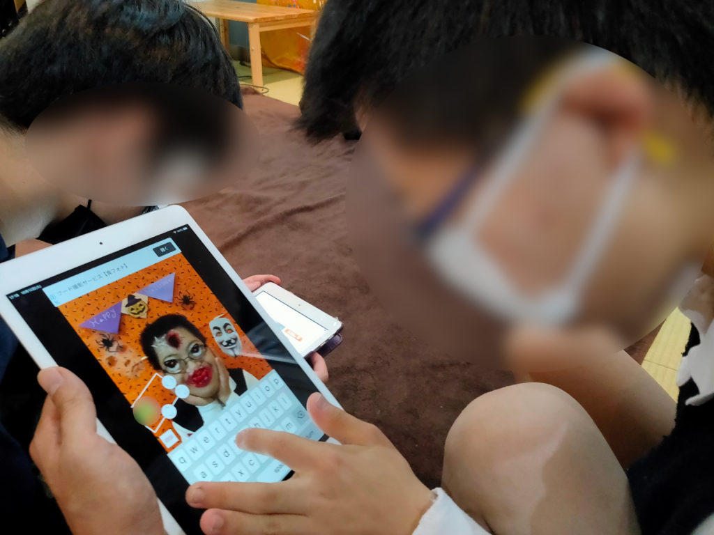 みんな、パーツやホラー効果を自分の写真にトッピングです。
