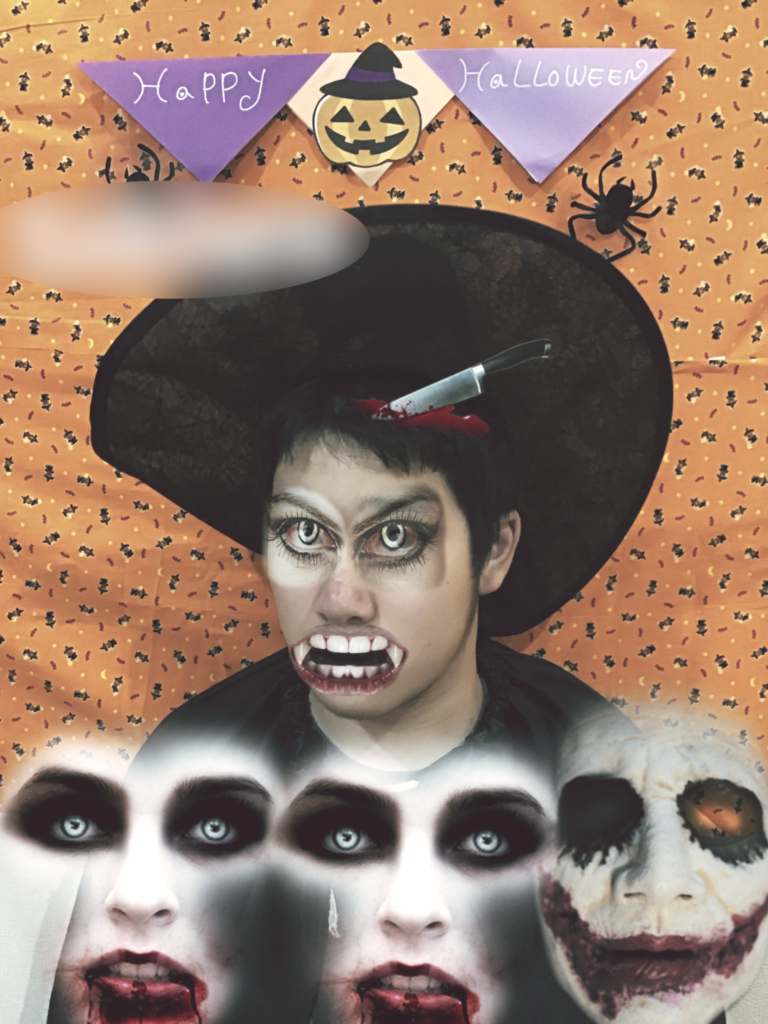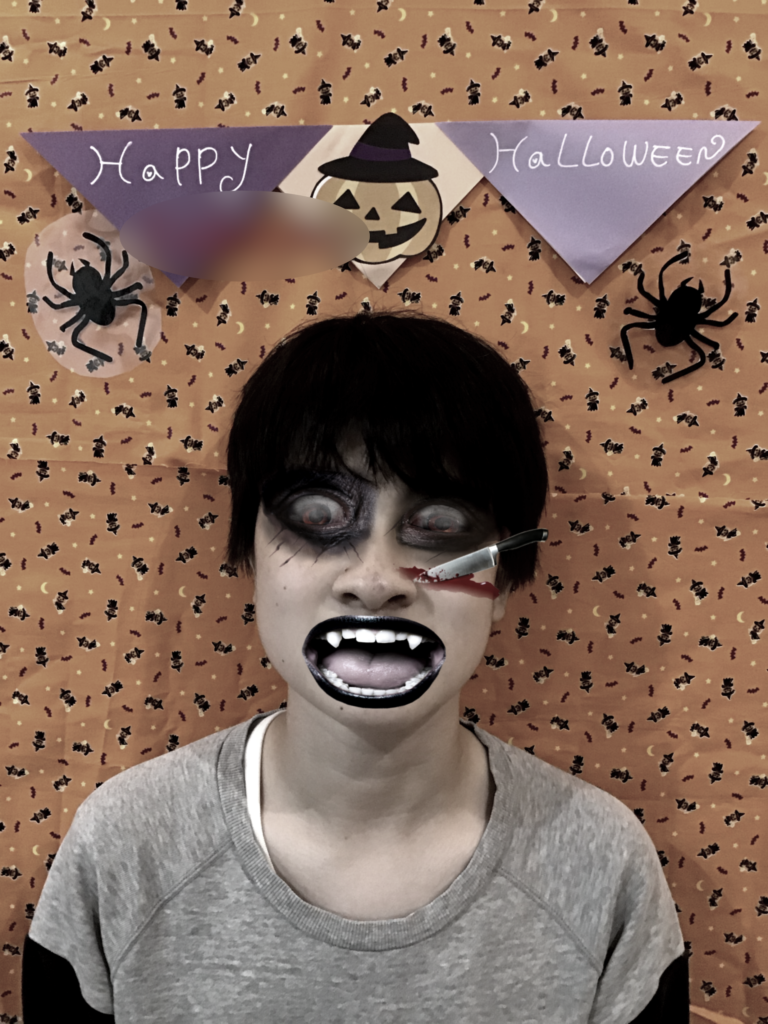 自分たちの写真にハロウィンホラーメイクをしてみました。