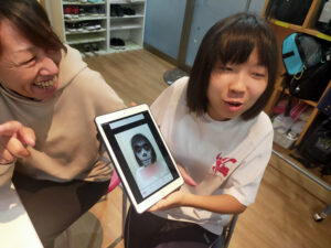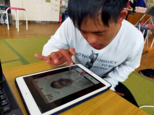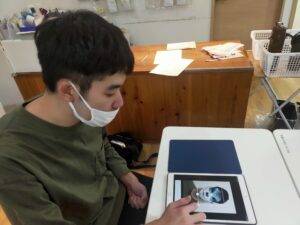 ふくふくでは今年は2年ぶり、3回目のタブレットでの自分の写真のホラー加工編集の活動を行いました。