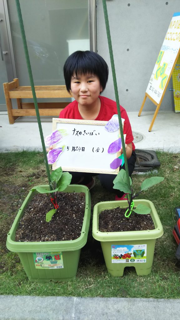 そんな実績と自信の消失から、今年は事前告知は控えていたのですが、今年もリベンジ企画としてこっそりと行っていました、ふくふく菜園。今年は「ナス」にチャレンジです!