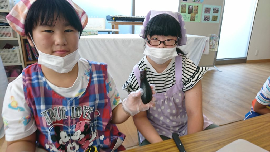 初めての成功をみんなで喜び、「味はどう?」と問いかけると、DくんやTくんは「お店のナスよりもうまいよ」なんて話をしながら、1人1かけのナスを食べました。菜園リベンジ大成功! (^o^)