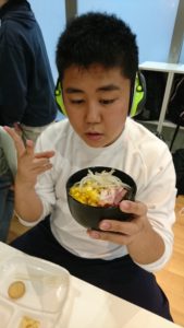 さて、準備バッチリですね!普段ならつくったものを普通にお皿に乗せていただきますですが、この日はお店屋さん形式。