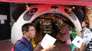 中華街っぽい道を散策です。手作りのしおりにある地図を自分たちで見ながら目的地に向かいます。