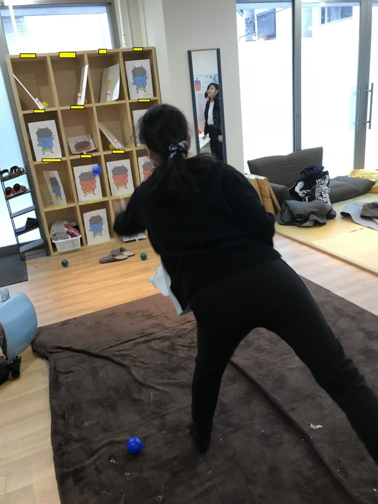 ちなみに(2回目)。別の曜日では、オニを的にしたストラックアウトで盛り上がったり、おやつで大人気の恵方巻をつくったりしましたよ。